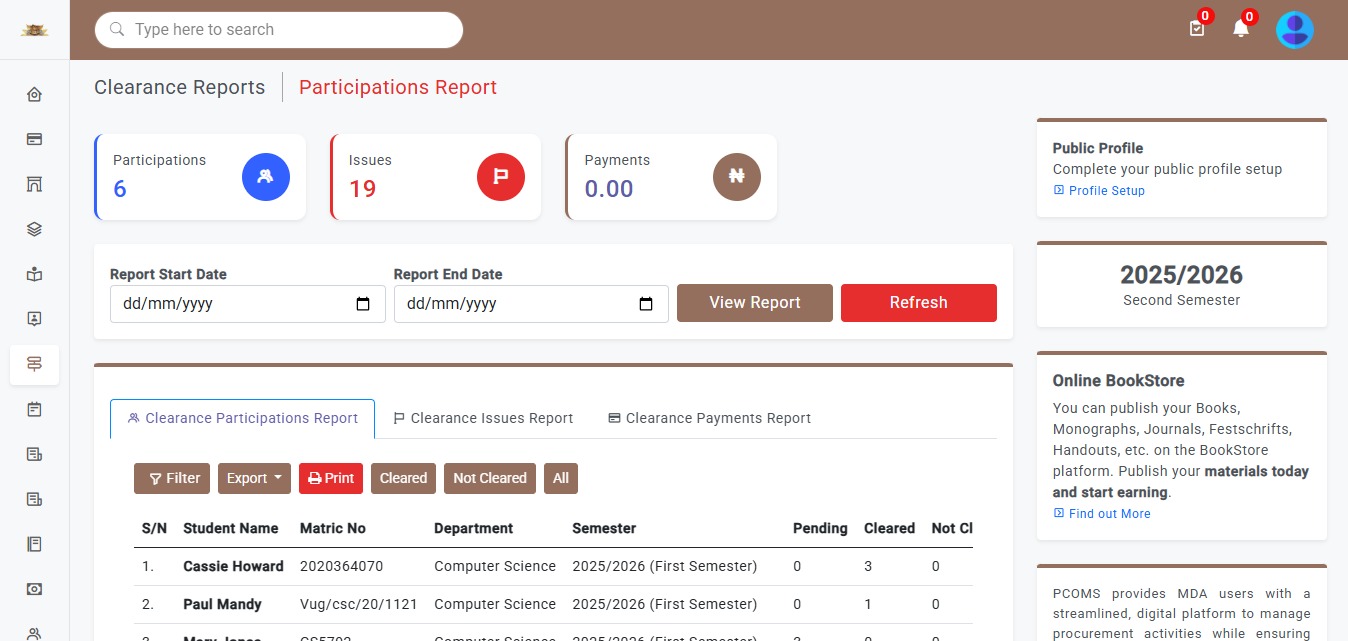 + Graduating Students - A final-year student submits a clearance request online, and within 48 hours, multiple departments complete their checks remotely, allowing the student to access their certificate without queueing.