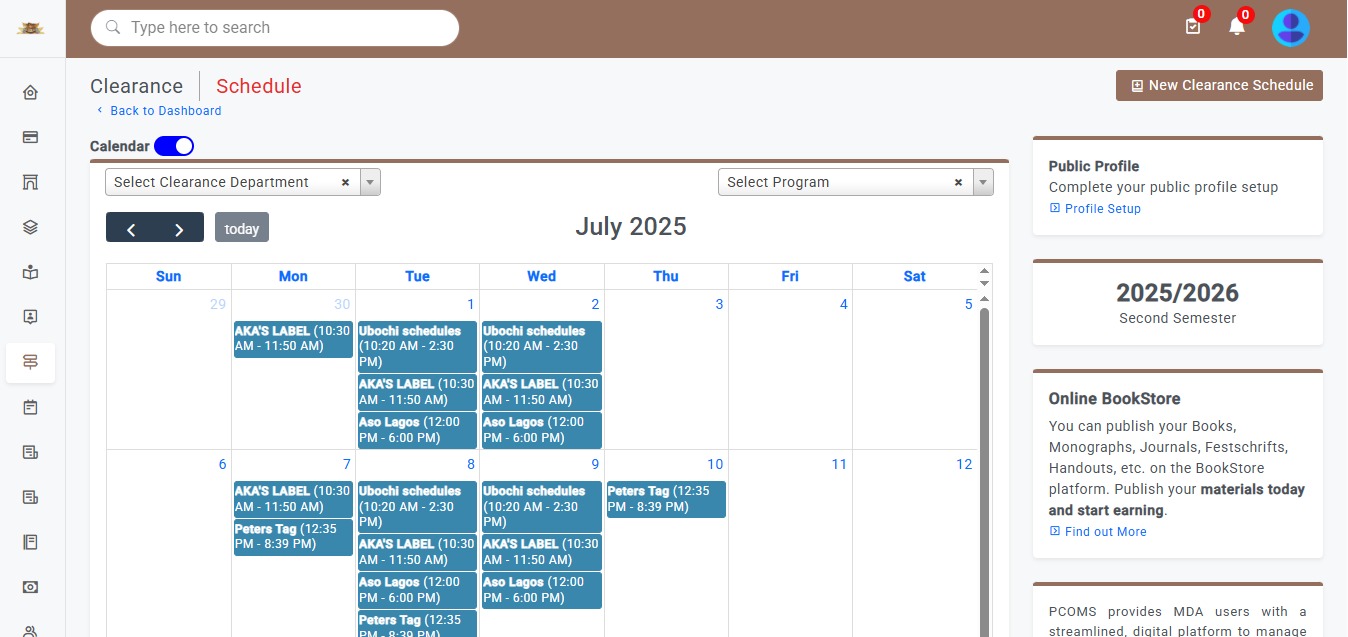 The E‑Clearance module offers an automated, institution-wide clearance system designed to simplify the traditional exit process for graduating students and exiting staff. By eliminating paperwork and long queues, Scola’s E‑Clearance ensures a seamless transition from institution to alumni or post-employment status. Whether it’s academic departments, library, hostel, finance, or ICT units, each clearance point is digitized into a unified dashboard that ensures transparency, accountability, and real-time processing.